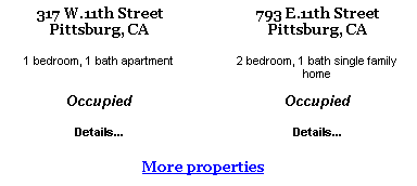MPD Enterprises owns and manages rental and investment properties throughout the San Francisco Bay Area and other areas of California.Property details and current occupancy statuses are shown below